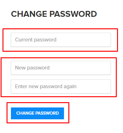 - Enter the required details Current Password, New, Password and Confirm New Password.